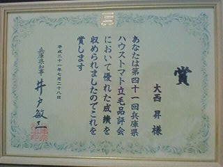 2009年7月 トマトで兵庫県知事賞を受賞しました。 |